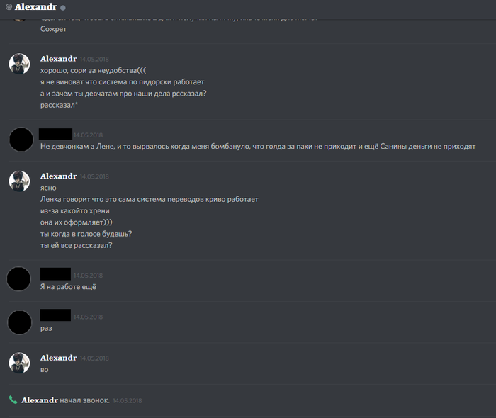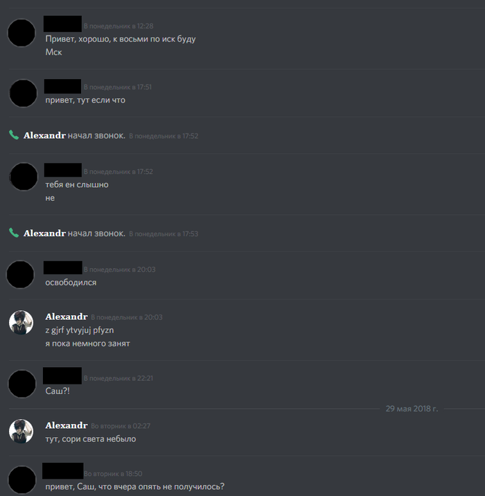 Саша молчит, начинаю лазить по дисскорду и вижу, что комнаты в которой мы все вместе сидели - больше не существует! Захожу в игру, нахожу Лену, спрашиваю -"Саша в игре был?", отвечает, что да, был и спрашивает: