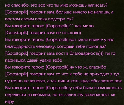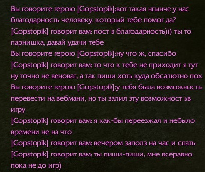 И все, дальше сообщений от Лены не было, но при всем при этом, зная что человек такой вот она продолжает с ним общаться и играть, я точно чего-то не понимаю в женщинах, ну да бог с ней.