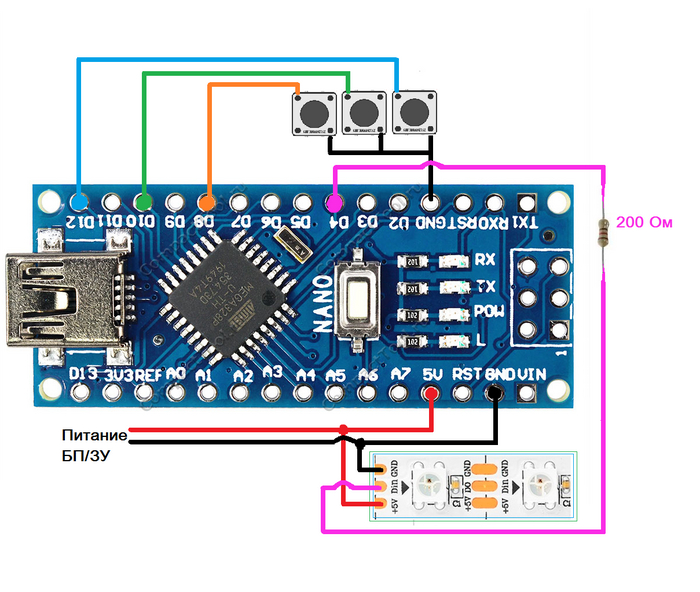 Но количество эффектов и ограниченный функционал ардуино нано заставили искать более интересный вариант.