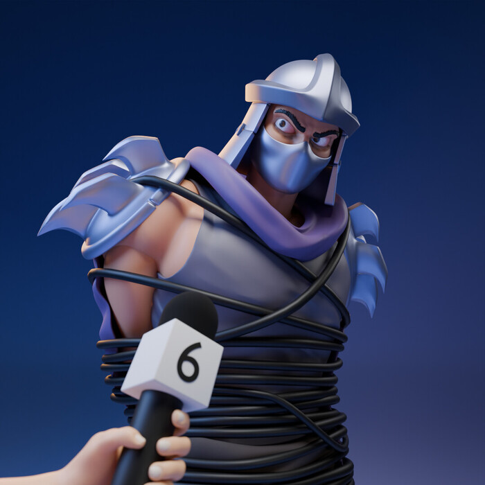 Я сначала думал добавить какого-нибудь персонажа посложнее, поинтереснее, с деталями, но сроки уже поджимали, поэтому я подумал что Шреддера в такой упрощённой стилистике легче всего сделать, да и он наиболее узнаваемый персонаж.