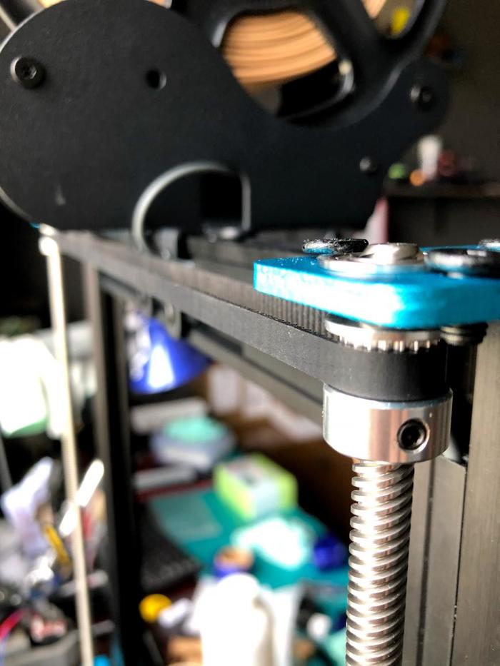 Классический дрыгостол на open builds. Стандартные ролики что на столе, что на каретке, которые не сложно найти и заменить. Простое и объективно нормальное рабочее решение. Движение каретки осуществляется на очень широком алюминиевом профиле 60х20. Стол перемещается на таком же широком профиле. Ось z перемещаться при помощи двух синхронизированных ремнем! движков по профилям 40х20. Весь его внешний вид внушает доверие, и совсем не зря. Конструкция выглядит крайне надёжно. На осях x и у установлены заводские натяжители.