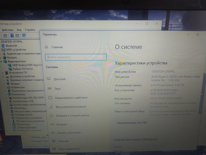 Почему то отображается как ryzen 5 3500u