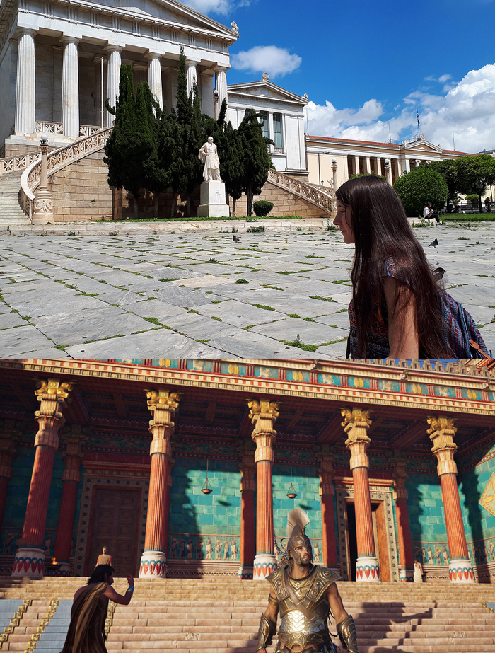 Кстати, статуи и здания были не белыми, а довольно ярко окрашены, чем можно полюбоваться в игре. А узнали об этом только недавно, после обнаруженных под светом ультрафиолетовой лампы мельчайших следов краски.