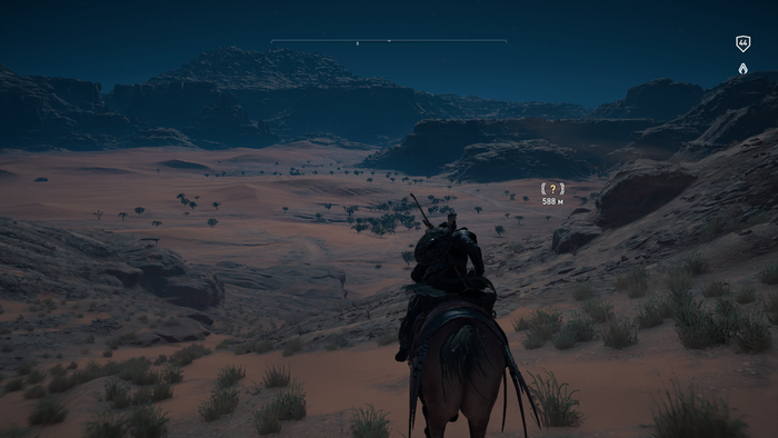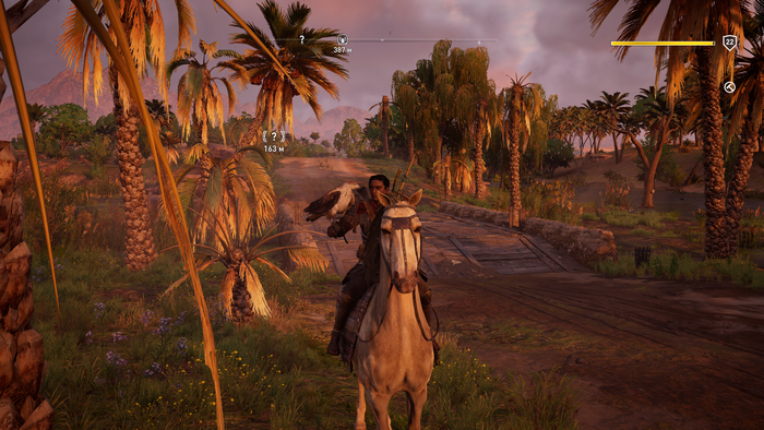 Не понравилось отсутствие таких ресурсов, как руда и дерево, как в Одиссее, когда руда валяется буквально под ногами абсолютно везде и разная, на пустырях, в каньонах, под водой, в пещерах, на скалах, везде крч, а древесина в виде маленьких тонких деревьев растёт во всех лесах и на пустырях. А в Истоках руду можно добыть только разобрав оружие или собрав из бочек, глиняных ваз, такое вот. Ещё есть огромные территории тупо без жизни, без животных, городов, жителей, врагов, точек синхронизации, без ничего крч. Ну вот хотя бы были бы раскиданы ресурсы по местности? Но нет. Так же рад, что в Одиссее это дополнили и скакать по степям до ближайшего города или задания было не так скучно, по пути собирал всё, что собирается. Зато в Истоках на таких пустынных локациях от жары могли появляться миражи и выглядело это немного пугающе и очень круто. Мне в Белой пустыне приглючил горящий куст и женщина, поливающая цветы (или сажающая их), когда подходил поближе, видения исчезали. Таким образом разрабы заполняли пустоту хотя бы такими видениями, тоже норм.
