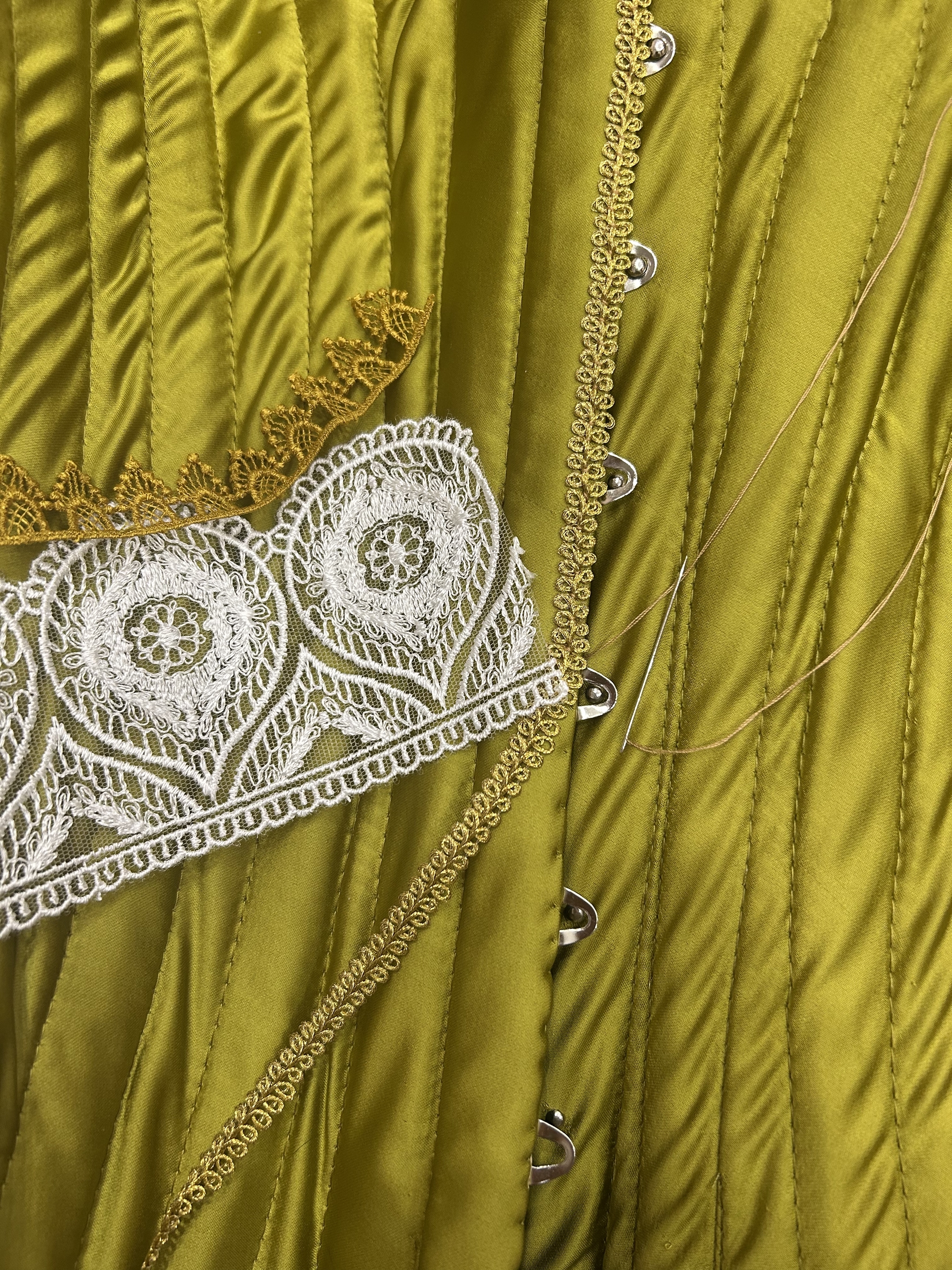Хочу также немного показать процесс работы, вручную обшивала корсет.
