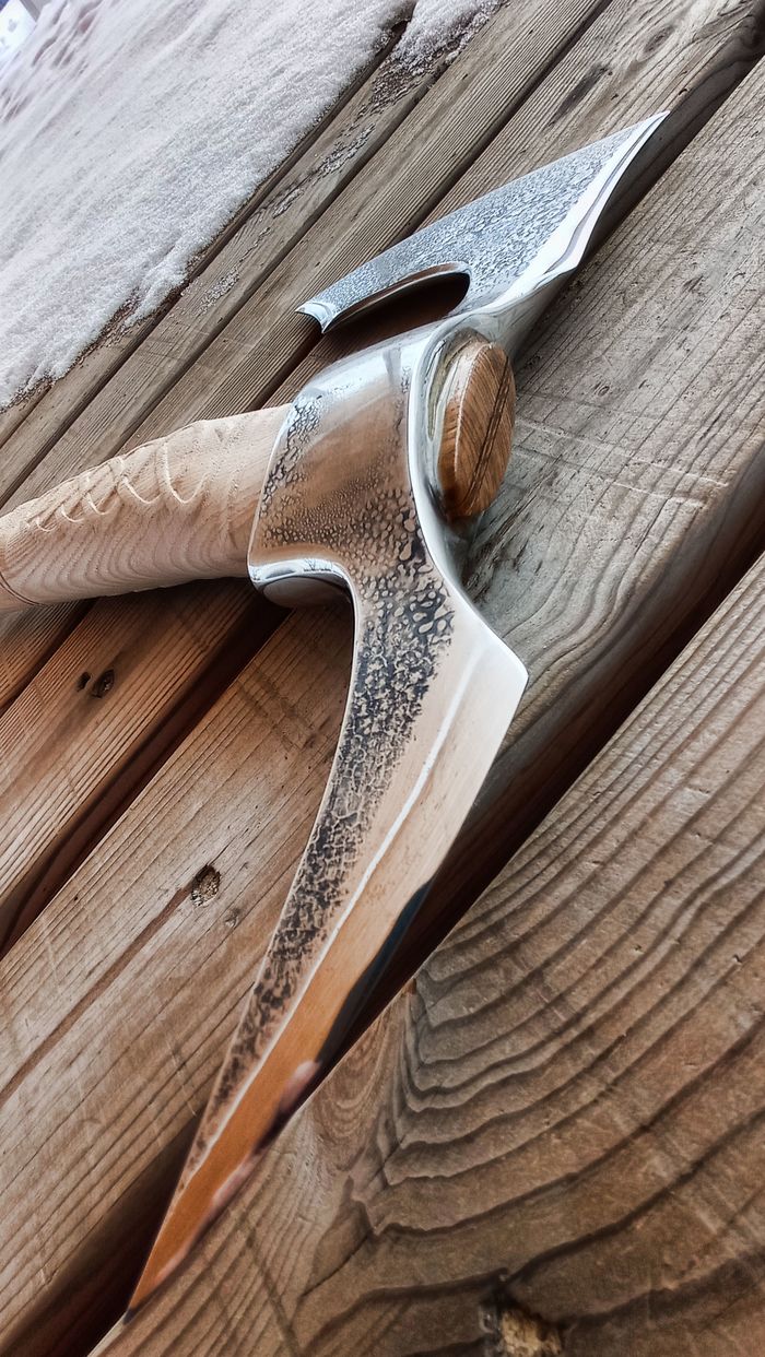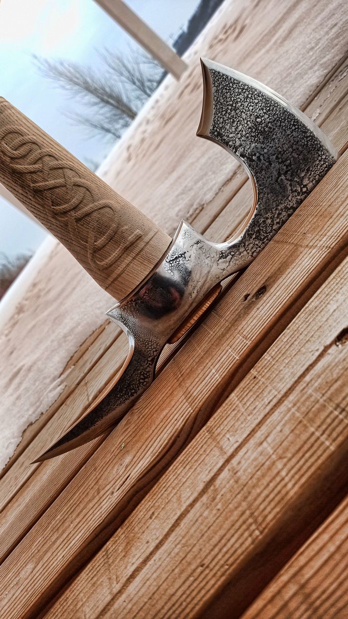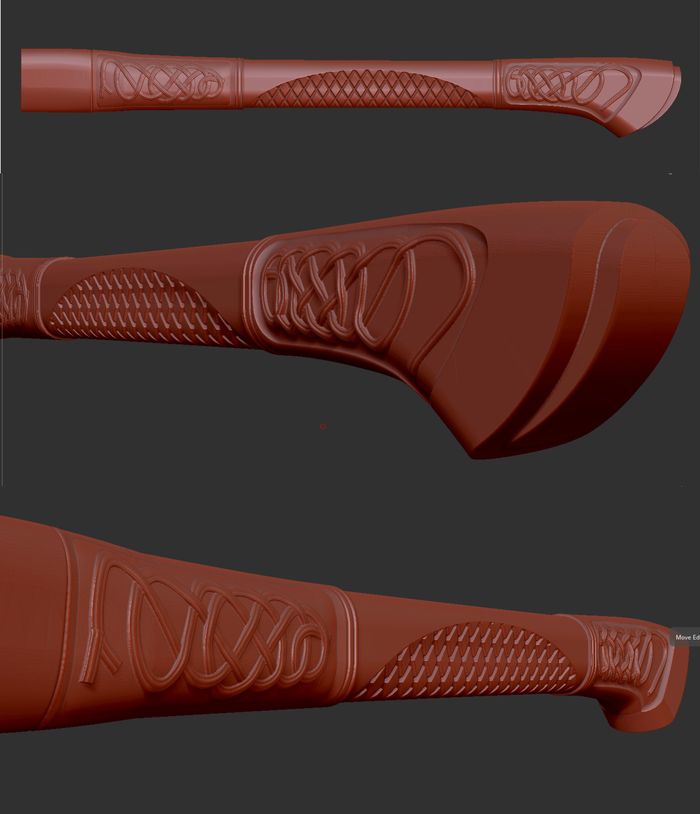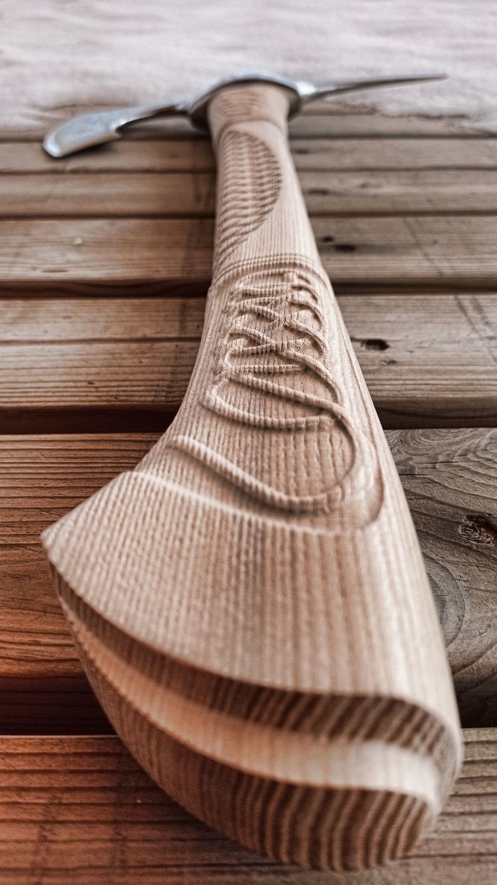 Всем привет! В этот раз у меня топорик по мотивам Assassin's creed, встречал на пикабу косплейную версию этого топора и решил изготовить что-то похожее, но не копию (чтобы геймдизайнер во сне не переворачивался))))) свиснул немного форму и рисунок на рукояти, а вот голову сделал дерзкой! Конечно этот топор не для дров, а для уничтожения орков! Как обычно моделил в зебре и максе, рукоять изготовлена из ясеня и ни чем пока не покрыта. Небольшой фото и видео отчёт: