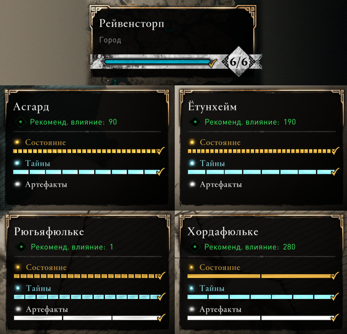 В ноябре вышла игра "Assassin's Creed: Valhalla" и я приобрёл её задолго до релиза. Мне по нраву тематика викингов. И я принял для себя решение пройти игру на все 100%. И вот, 155 часов игры спустя я-таки прошёл все основные квесты, получил в игре все точки состояния, раскрыл все тайны и собрал все артефакты.