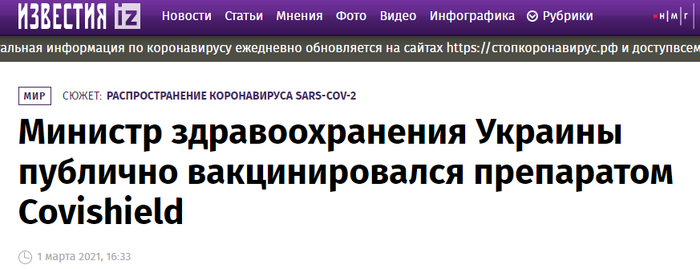 Reuters со ссылкой на источник сообщило, что Италия остановила вакцинацию препаратами AstraZeneca одной из партий после того, как умерли двое недавно привившихся мужчин на Сицилии. В итальянском агентстве по лекарственным средствам заявили, что пока никакой связи между вакциной и выявленными серьезными побочными эффектами установить не удалось. Приостановила вакцинацию и Исландия.