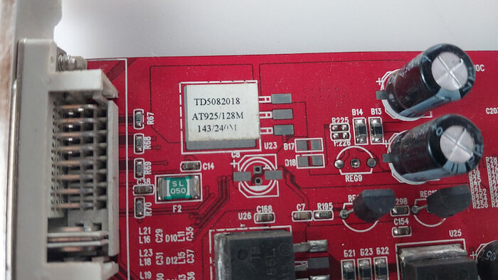 Маркировка Giabyte ATI Radeon 9250 64Mb. Я думаю ее многие узнают.
