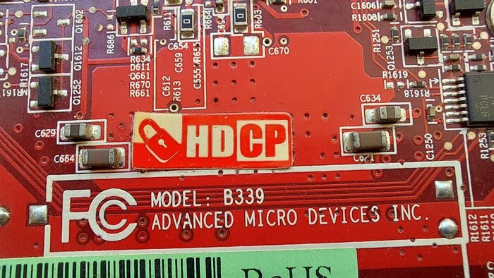 Кстати на обратной стороне карточки так же есть маленькая наклейка с оповещением поддержки HDCP. Так же в комплекте с видеокартой шел переходник DVI-HDMI, видеокарта умеет передачу звука.