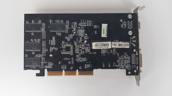 ATI Radeon 7000. Обратная сторона. Можем видеть наклейку DEPO, скорее всего она шла в составе системника этой фирмы.