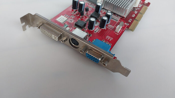 По видеовыходам видеокарта привычные нам: VGA(D-Sub), DVI и S-Video с возможностью вывода компонентного и композитного сигнала.