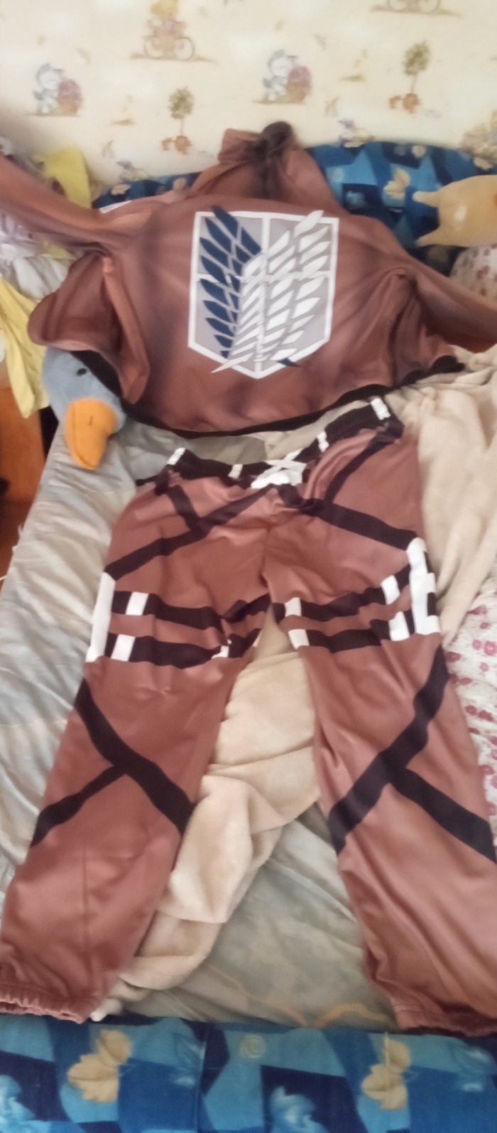 Сегодня пришёл костюмчик в стиле АоТ. Какие-то элементы нарисовал сам, какие-то нашёл в интернете (для макета). Обошлось в 6к ( не считая доставку ).