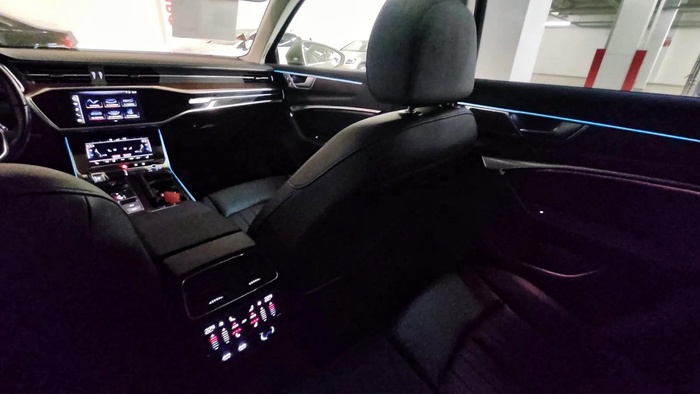 Как и салон универсала A6 Avant, интерьер нового седана оформлен по всем современным канонам Audi. На передней панели штатно установлены два экрана в едином изогнутом корпусе: приборный на 11,9 дюйма и мультимедийный на 14,5 дюйма. За доплату предложен третий экран диагональю 10,9 дюйма перед пассажиром. Опционально предусмотрены проекция на лобовое стекло, четырехзонный климат-контроль, а также аудиосистема Bang & Olufsen с объемным звучанием (16 либо 20 динамиков). Объем багажника — 492 литра против 565 л у прежней модели. Зато сохранена внушительная ширина отсека (1050 мм), а спинка заднего дивана складывается в пропорции 40:20:40.