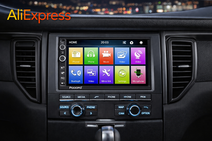 Автомагнитола Podofo формата 2DIN оснащена сенсорным экраном диагональю 7 дюймов и поддерживает воспроизведение мультимедиа с различных источников. Bluetooth-модуль позволяет подключать смартфон для звонков и прослушивания музыки. Устройство поддерживает USB, TF-карты и FM-радио.