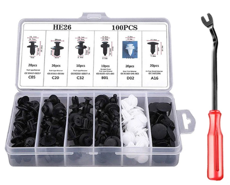 Набор используется при ремонте и замене обшивки. Наличие разных типов креплений упрощает обслуживание автомобиля без поиска отдельных элементов. Решение востребовано для гаражных и сервисных работ.