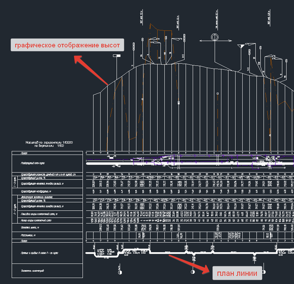 и самое главное продольный профиль пути - проекция трассы железной дороги на вертикальную плоскость, на котором отображается и план пути - проекция трассы железной дороги на горизонтальную плоскость:
