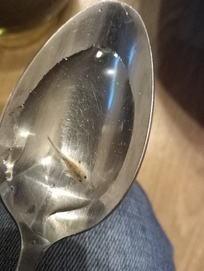 А еще, у одного малька откусили хвост) вот он, к сожалению, не выжил. Вот...
