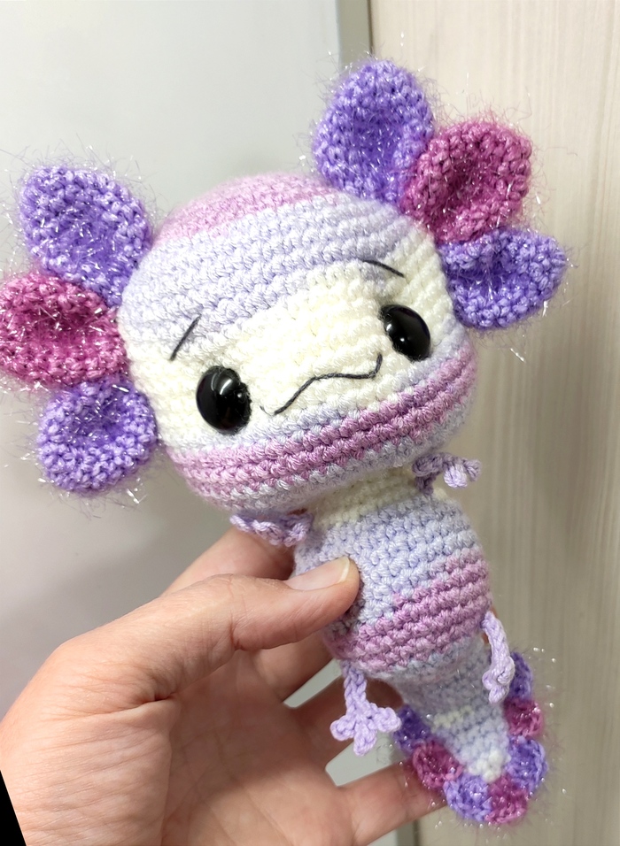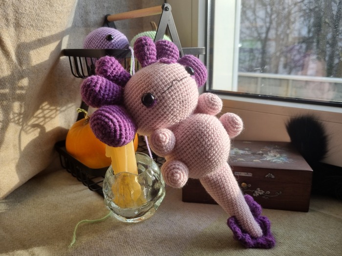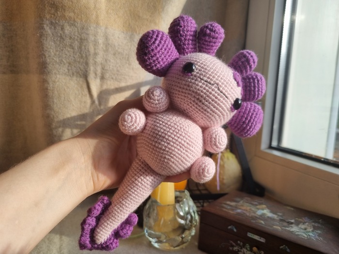 Этот аксолотль был связан на заказ буквально за вчерашний день. Закончила я его в три часа ночи, по мне, он получился обворожительным.