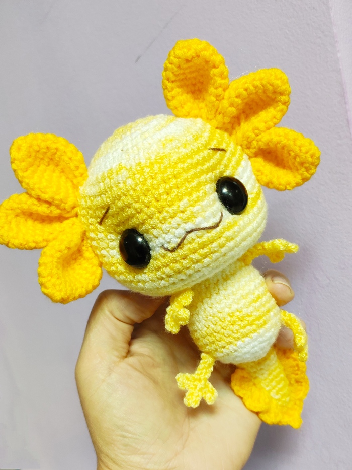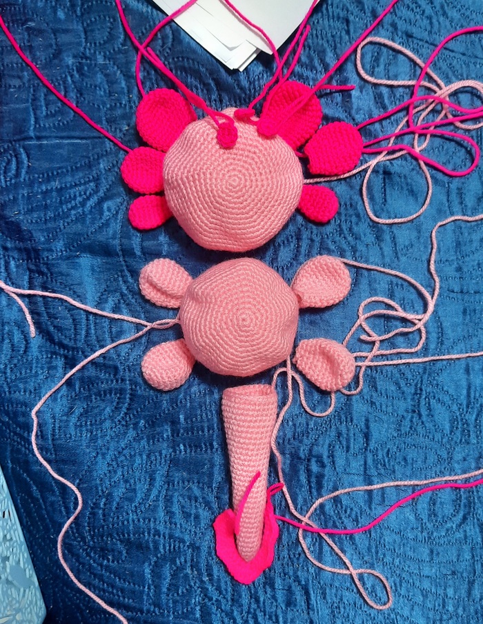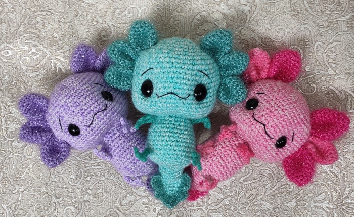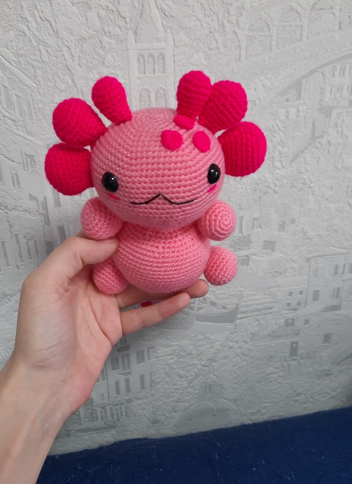 Дочка обожает аксолотлей. Из магазина у неё есть, было принято решение подарить ещё одного, но связать своими руками)