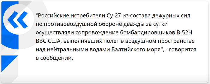 «15 марта 2019 года самолёт В-52 ВВС США совершил пролёт с включённым транспондером над нейтральными водами Балтийского моря параллельным курсом к территориальным водам Российской Федерации», — говорится в сообщении.