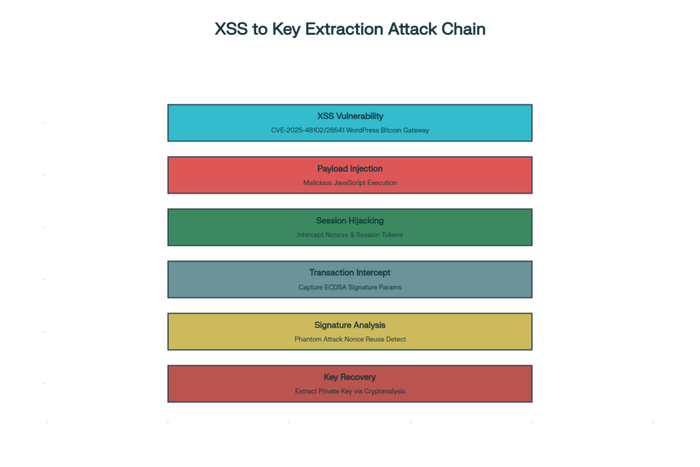 Через XSS-уязвимости (CVE-2025-48102, CVE-2025-26541) перехват параметров (r, s) подписей для последующего криптоанализа.