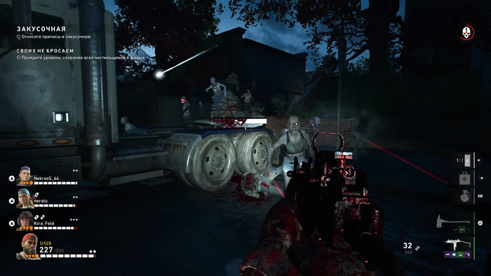 А вот процесс уничтожения мертвяков доставляет. Оружие ощущается хорошо. Не Call of Duty, конечно, но стрелять приятно. Арсенал достаточно обширный. Винтовки, пулеметы, дробовики, ПП, снайперки, пистолеты и рукопашное оружие. Все еще и по уровням редкости разбито, как в каком-нибудь Borderlands. Зачем – не понятно. Зато на любую пушку можно найти или купить с сейфруме обвесы. Прицелы, магазины, приклады – все это улучшает характеристики оружия. Даже на топор и биту можно навешать модов. Стрельба в игре удалась. Это несомненный плюс.