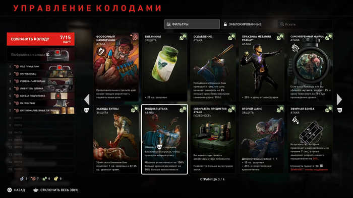 Что бы разнообразить геймплей Turtle Rock ввели систему карточек с бонусами. Из карт нужно составить свою колоду и в каждом забеге случайным образом из нее активируются бонусы. Среди карт есть как банальные, вроде увеличения точности, так и уникальные. К примеру, карта, пополняющая здоровье персонажа при убийстве ножом. Нововведение любопытное и может неплохо разнообразить игру. Как и особенности персонажей. Теперь выбор героя влияет не только на внешний вид, но и на бонусы. Кто-то лучше дерется в ближнем бою, кто-то дольше бегает, или один раз может поднять раненого за пару секунд.