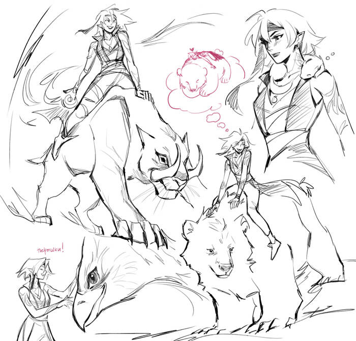 Терай и Вергилий. Лия и её любимый друид в зверином облике. Бабай и его покровительница // Art by LIXA
