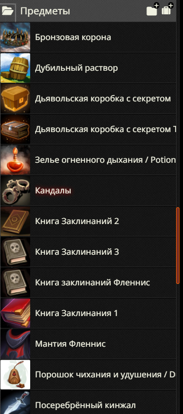 Я все также продолжаю добавлять предметы по мере создания ссылок в заметках. Большая часть ключевых предметов уже созданы, но я не уверен что буду делать всякие ожерелье за 25зм и тд. Разве, что ближе к финальному релизу