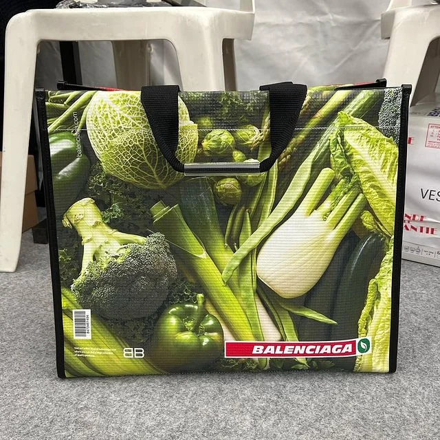 Модный дом Balenciaga представил вещи из коллекции весна-лето 2024 на Неделе моды в Париже. Пользователей сети особенно привлекла одна провокационная новинка — сумка в стиле продуктовых пакетов. Аксессуар выполнен из лакированного нетканого материала. Он выглядит как пакет прямоугольной формы с цветными ручками.