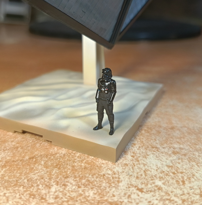 5. Чуть больше творчества при покраске подставки. Чёрный прешейдинг и затем окраска двумя оттенками под песок, а сама стойка окрашена в цвета неба Джакку - бежевый, белый, бледно-голубой.