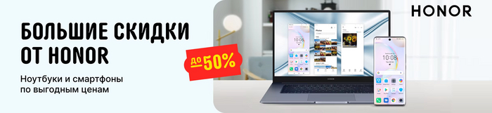 Большие скидки от HONOR. Ноутбуки и смартфоны по выгодным ценам до –50%. Страница акции