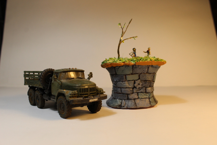 Всем привет! Сегодня закончил сборку очередной работы. На сей раз это диорама по мотивам игры Bastion, диорама называется "Bastion. Kid and Zia". Очень нравится саундтрек в этом месте (который называется Darren Korb-Build That Wall). Делал диораму почти 4 месяца. Тут я впервые пробовал лепку фигур (лепил тем, что явно не предназначено для этого, текстурная паста). В целом вышло неплохо, как для первой лепки и размера фигур в общем (в сравнении с ЗиЛ-131 в масштабе 1:72)