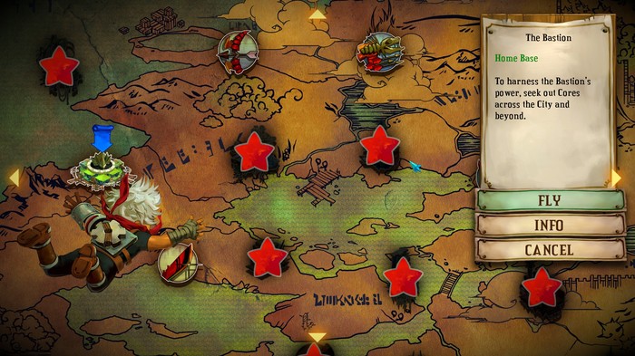 Там он встречает старика по имени Рукс, который предлагает план действий: разыскать ядра, которыми можно запитать Бастион, что теоретически может помочь исправить ситуацию. Ну, или, хотя бы банально выжить в новом, изуродованном Катастрофой, мире.