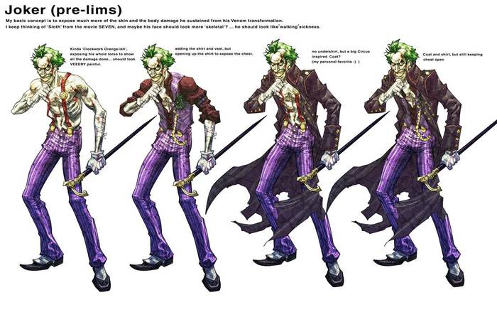 Когда мне впервые предложили поучаствовать в создании Batman: Arkham Asylum, я посмотрел несколько работ, которые Rocksteady уже сделала к тому моменту, и я понял, что они уже движутся именно в этом направлении. Это был очень индустриальный мир, очень готический и очень злобный, — и поэтому персонажи должны были отражать его. Я люблю Бэтмена и всех его врагов, поэтому я хотел быть уверенным, что смогу остаться верным их духу, а не просто менять их лишь ради того, чтобы что-то поменять.