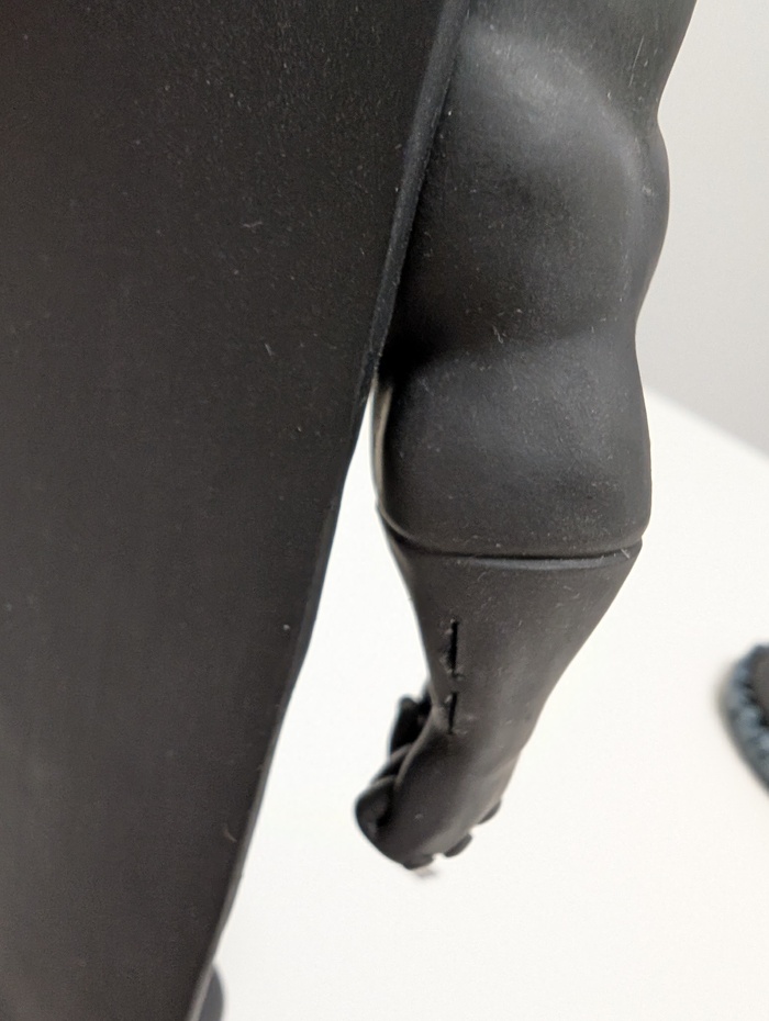 При дальнейшей распаковке в домашних условиях подставка окончательно отвалилась, а также стало заметно, что в тех местах, где один слой краски наносился поверх другого, она держится не очень хорошо, и любое неосторожное касание может её сбить. На примере фото подставки, можно увидеть, что чёрная краска в паре-тройке мест стёрлась, видимо от неосторожного касания ногтем, или как-то ещё, я даже не заметил, как это произошло.