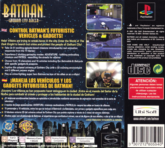 10. Эксклюзивная аркадная гонка для PSX - Batman: Gotham City Racer (2001), в которой преобладают заезды на время.