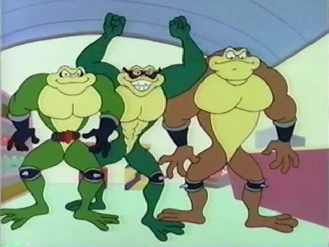 В мультсериале жабы это школьники-неудачники ( Джордж, Морган и Дэйв). Хотя жабы и заняты борьбой с Темной Королевой, они все еще могут превращаться обратно в нормальных людей, сказав «Давайте станем нормальными». Чтобы снова превратиться в Боевых жаб, они просто говорят: «Давайте станем бородавчатыми» (Let's get warty).