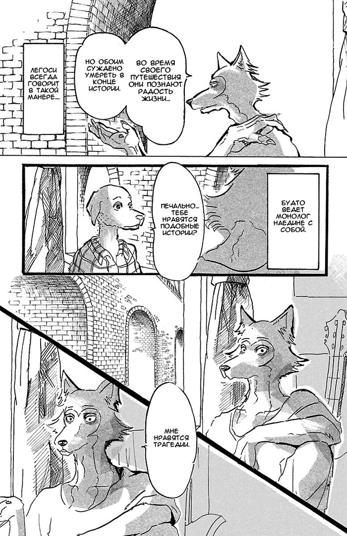 Возникает действительно интересная мысль… а вдруг это именно Легоси убил бедного альпаку в самом начале истории? Да нет! Не может быть, ведь он на протяжении всей манги борется со своей сущностью, а если бы именно он совершил убийство в начале, то внутренний конфликт выглядел бы совершенно иначе… Или же нет? Ведь на самом деле Легоси уже один раз пролил кровь живого существа…
