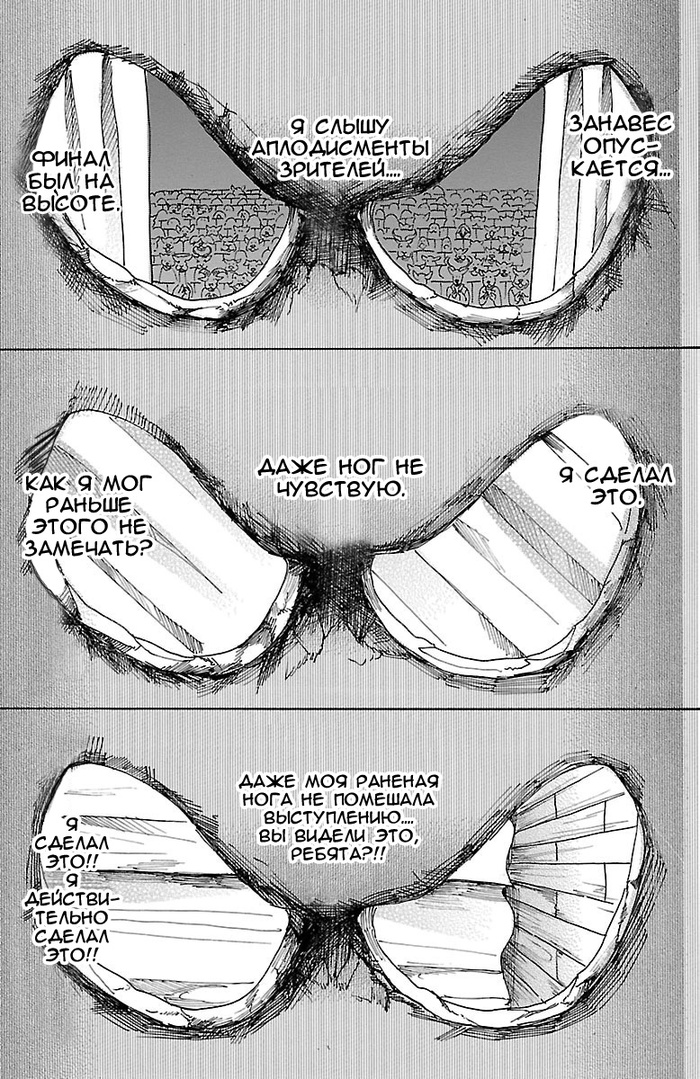 А еще, мангака подарила Луису одни из лучших визуальных метафор, а так же хорошо поданных и поставленных моментов. Чего только стоит финал театрально выступления нарисованный из глаз Луиса, через маску.