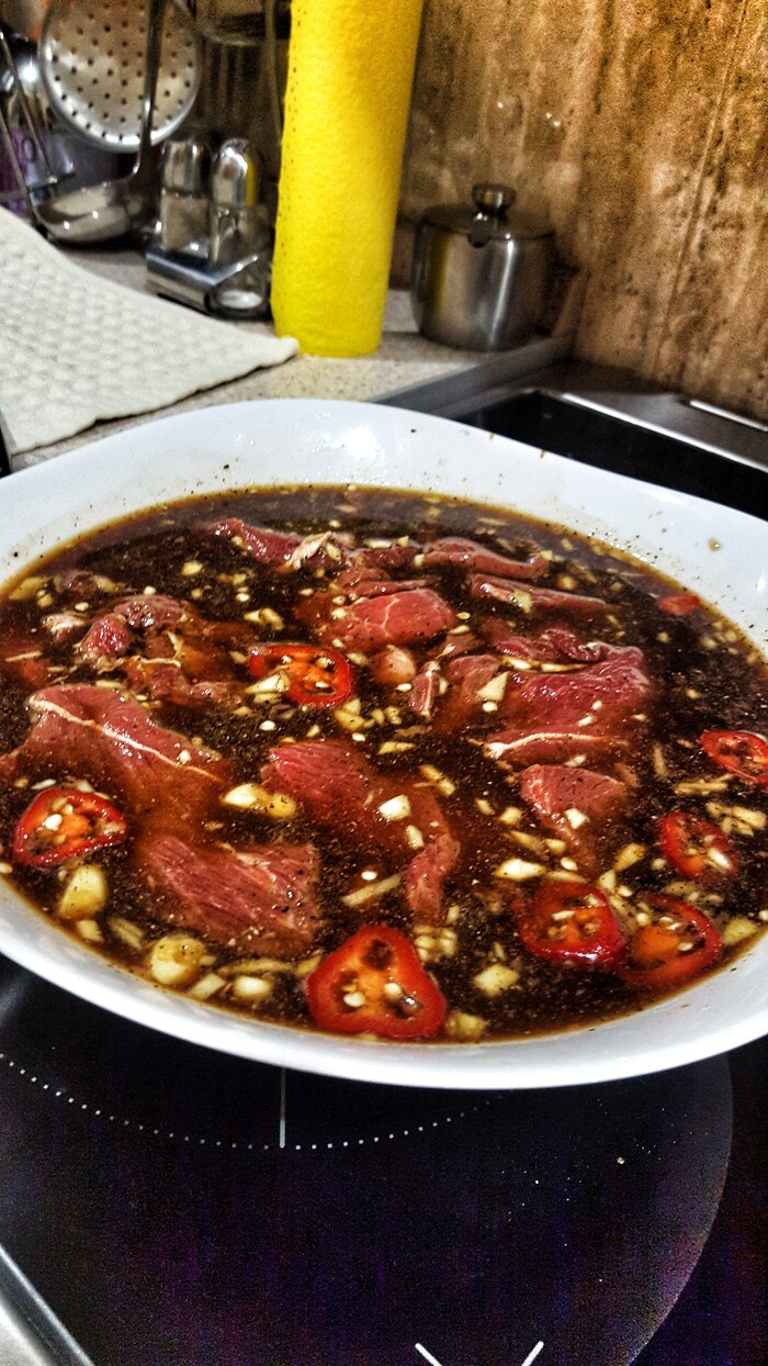 Все специи смешать с мясом и убрать в холодильник, на ночь вполне достаточно!) Утром (в моём случае прошло 10 часов) слайсы мяса укладываем на решётки сушилки и отправляем сушить.