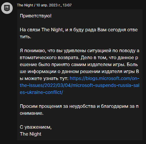 А сегодня обнаружил, что в одностороннем порядке со стороны EGS, за неё произведен возврат средств, а сама игра пропала из библиотеки моего аккаунта EGS. :(