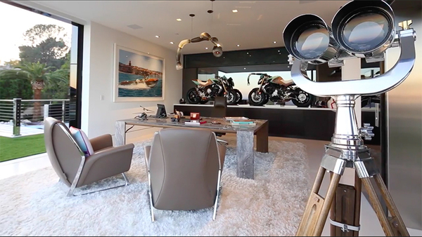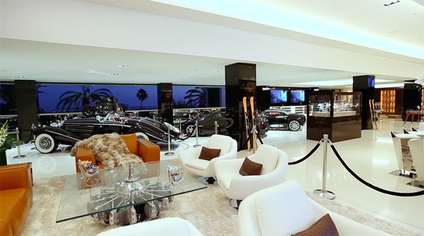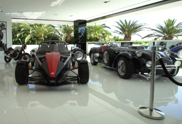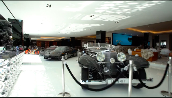 Гараж тоже есть, всего 12 автомобилей и 10 мотоциклов, начиная классическим родстером Mercedes 540-K 1936 года, который оценили в 15 миллионов долларов, и заканчивая гиперкаром Pagani Huayra, всего за 2 миллиона.