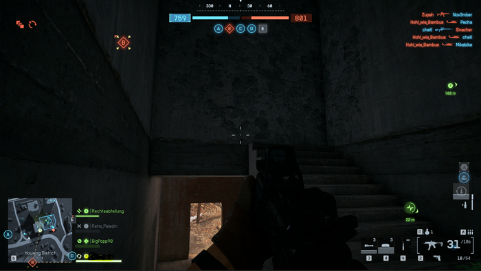 ВСЯ карта вот такая. Вы скажете: так в БФ3 и БФ4 тоже были закрытые карты для пехоты! А я вам отвечу, что их делали люди талантливые, потому там было много длинных прямых, длинных путей обхода, и они были разнообразными. Вот снизу два скриншота, это одна и та же карта, Операция "Взаперти":