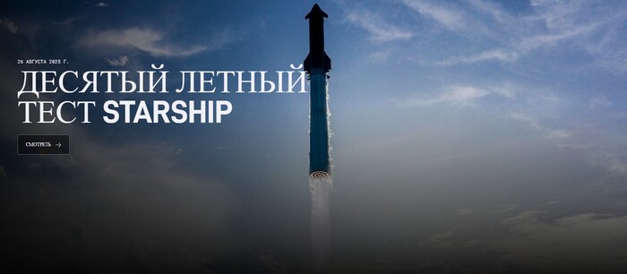 26-ого августа 2025 года в десятом испытательном полете гигантской пусковой системы космический аппарат успешно прошел все важные испытания, включая вывод полезной нагрузки в космос, работу двигателя в космосе и успешный маневр посадки.
