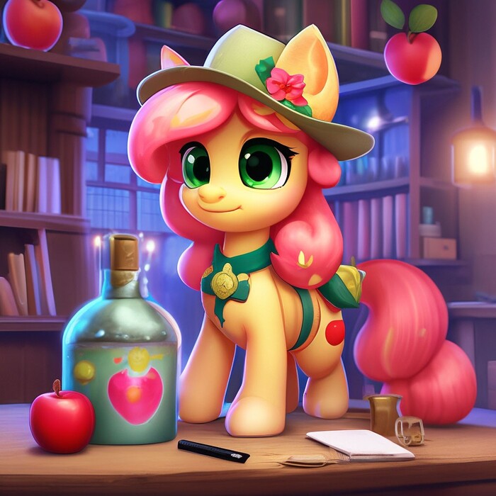 Сегодня у нас - слияние лучшей принцессы, молчаливого, но доброго поня-фермера Биг Макинтоша и любительницы книжек и учения, принцессы дружбы Твайлайт Спаркл. Автор на Буре назвал его Sparkling Cider - "Искрящийся Сидр". Впрочем, это не мешает вам придумать ему другое имя!