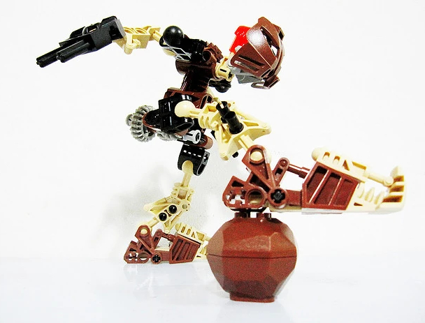 Таху, Тоа Огня, уважают его силу и опасаются за его быстрый характер. Он может сердиться на расплавленную лаву и прорезать твердый камень своим мечом огня! Используйте колесо на спине, чтобы поднять и опустить меч.