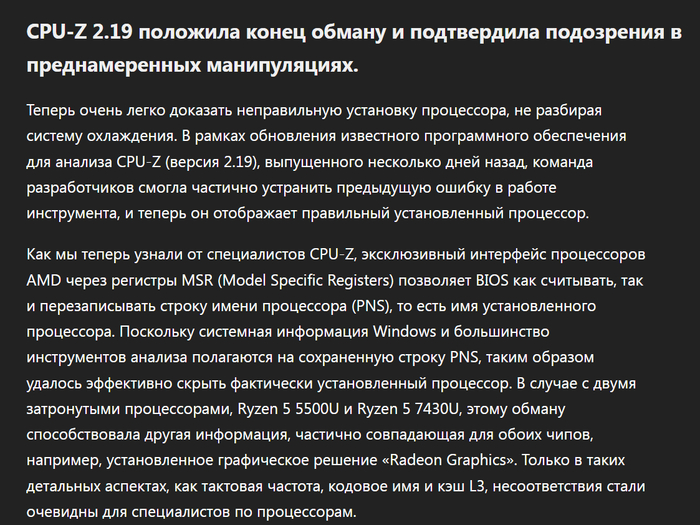 CPU-Z 2.19 положила конец обману и подтвердила подозрения в преднамеренных манипуляциях.