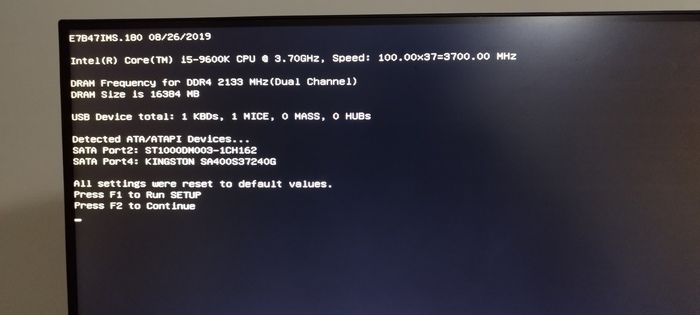 В общем оставляю я его в покое, и иду гуглить проблему. Как гуглить это, я не понимаю. На мои запросы гугл выдает "just press del to enter setup". Но пока я страдал фигней минут 30, экран поменялся на этот.
